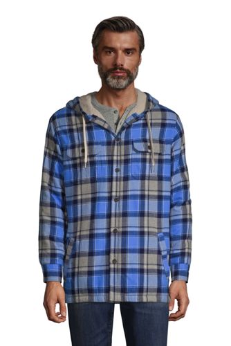 Men S Sherpa Lined Hooded Flannel Shirt Jacket Lands End